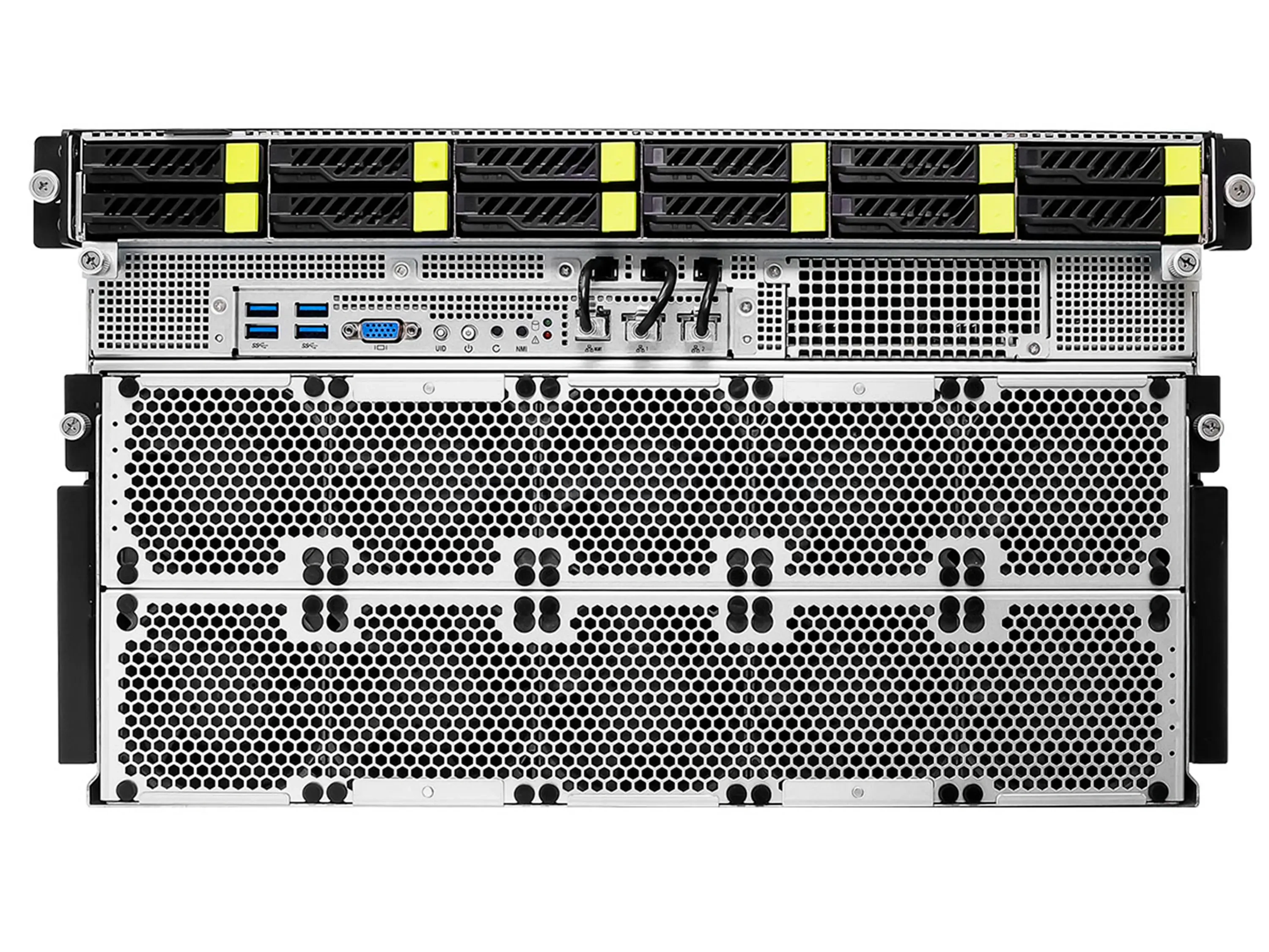 | SSD накопители | 8× hot-swap 2.5" NVMe PCIe 5.0 x4 (через PCIe Switch) + 4× hot-swap 2.5" NVMe PCIe 5.0 x4 (от CPU), а также 2× M.2 (PCIe 3.0 x2/SATA и PCIe 3.0 x4/SATA) |