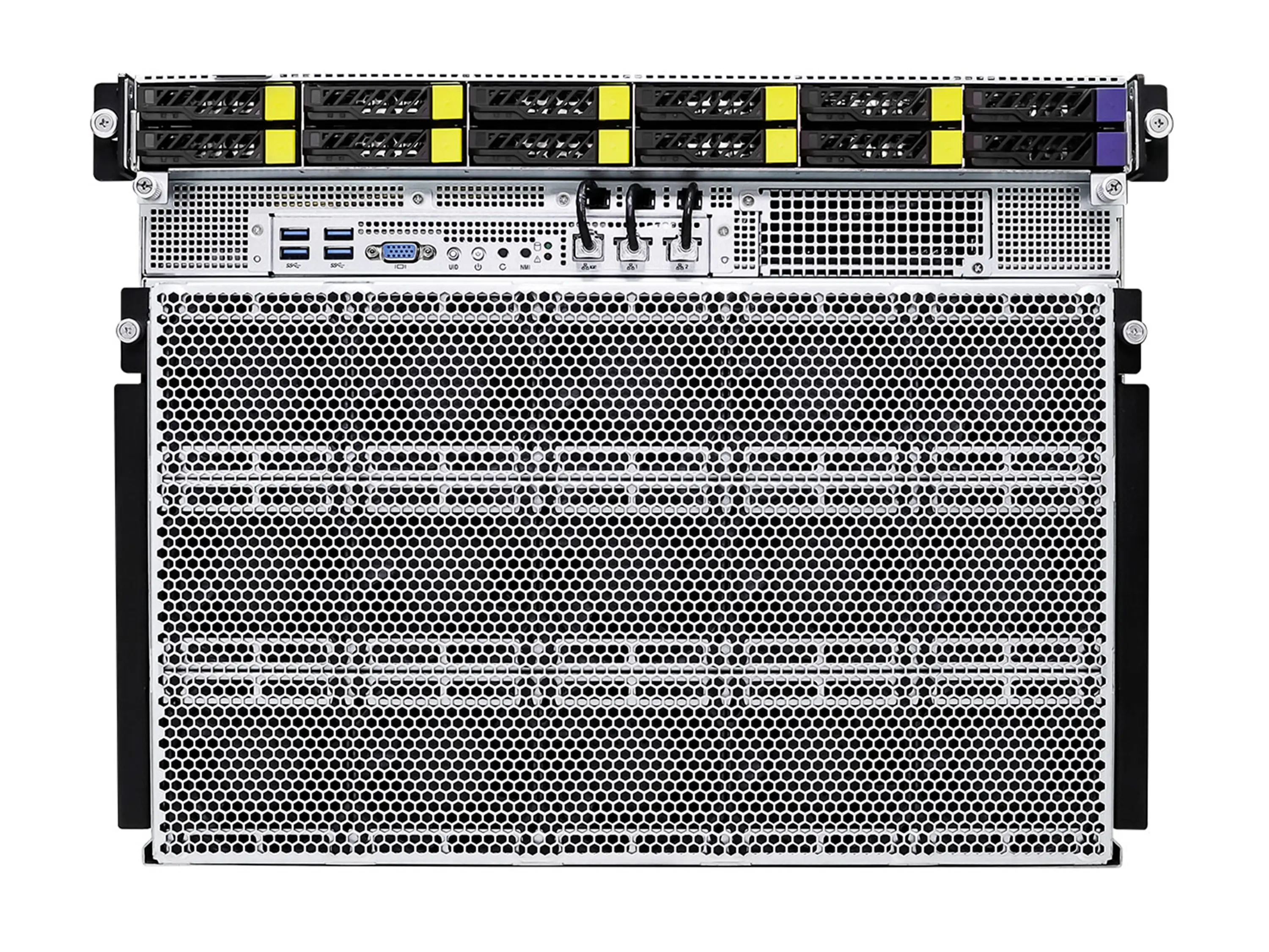 | SSD накопители | 8× hot-swap 2.5" NVMe PCIe 5.0 x4 (через PCIe switch), 2× hot-swap 2.5" NVMe (PCIe 5.0 x4) / SATA (PCH) и 2× hot-swap 2.5" SATA (PCH), плюс 1× M.2 (PCIe 3.0 x4 или SATA 6Gb/s) и 1× M.2 (PCIe 3.0 x4) |