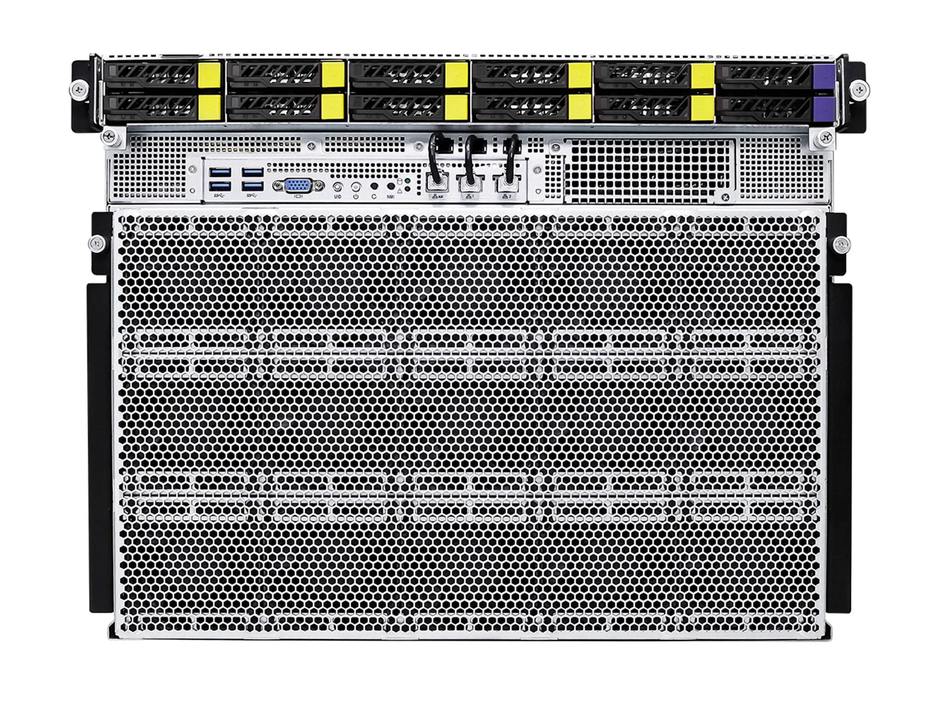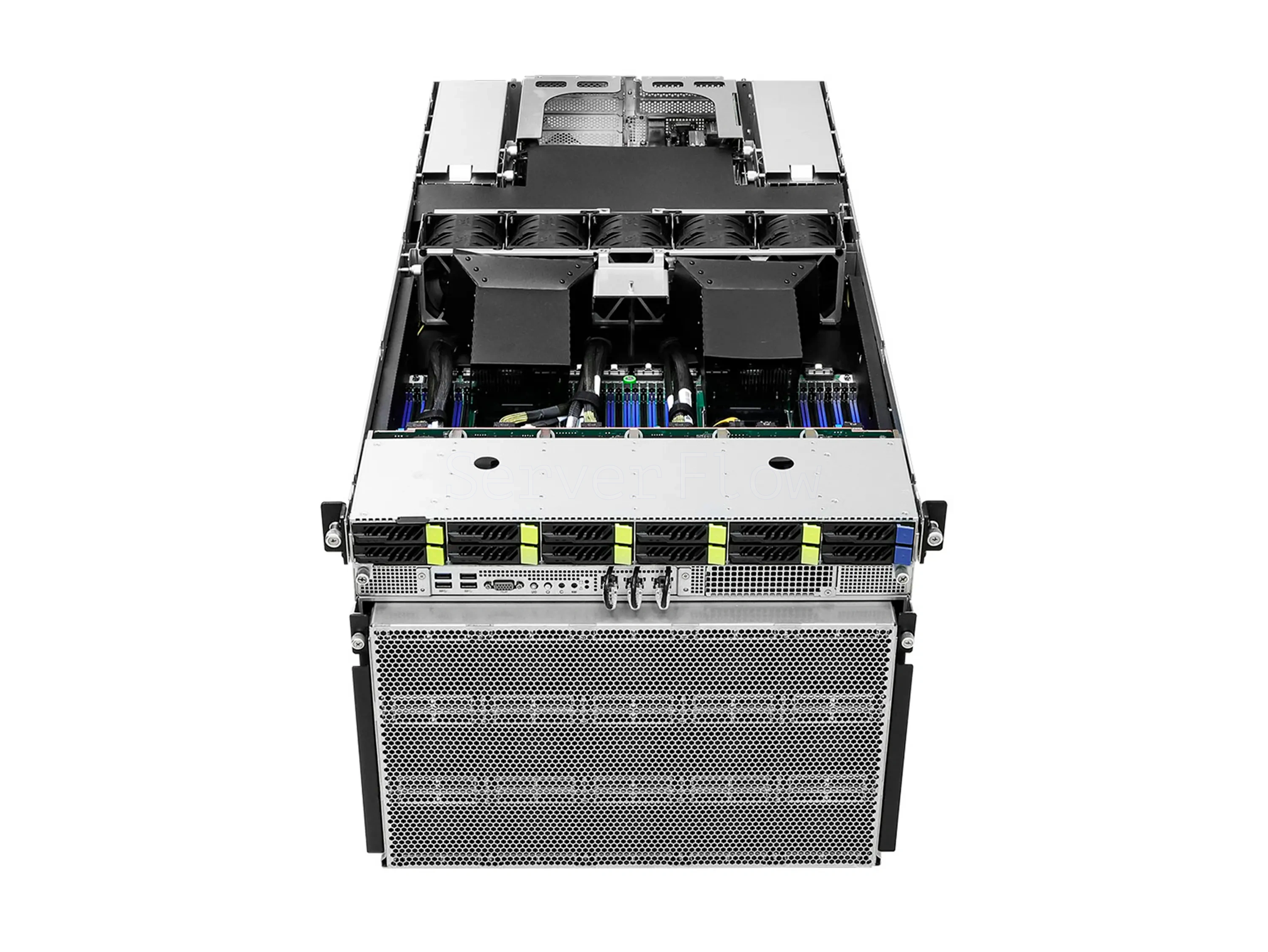 | SSD накопители | 8× Hot-swap 2.5" NVMe (PCIe5.0 x4), 2× Hot-swap 2.5" NVMe (PCIe5.0 x4) и 1× M.2 (PCIe5.0 x2), поддерживает 22110/2280 форм факторы |