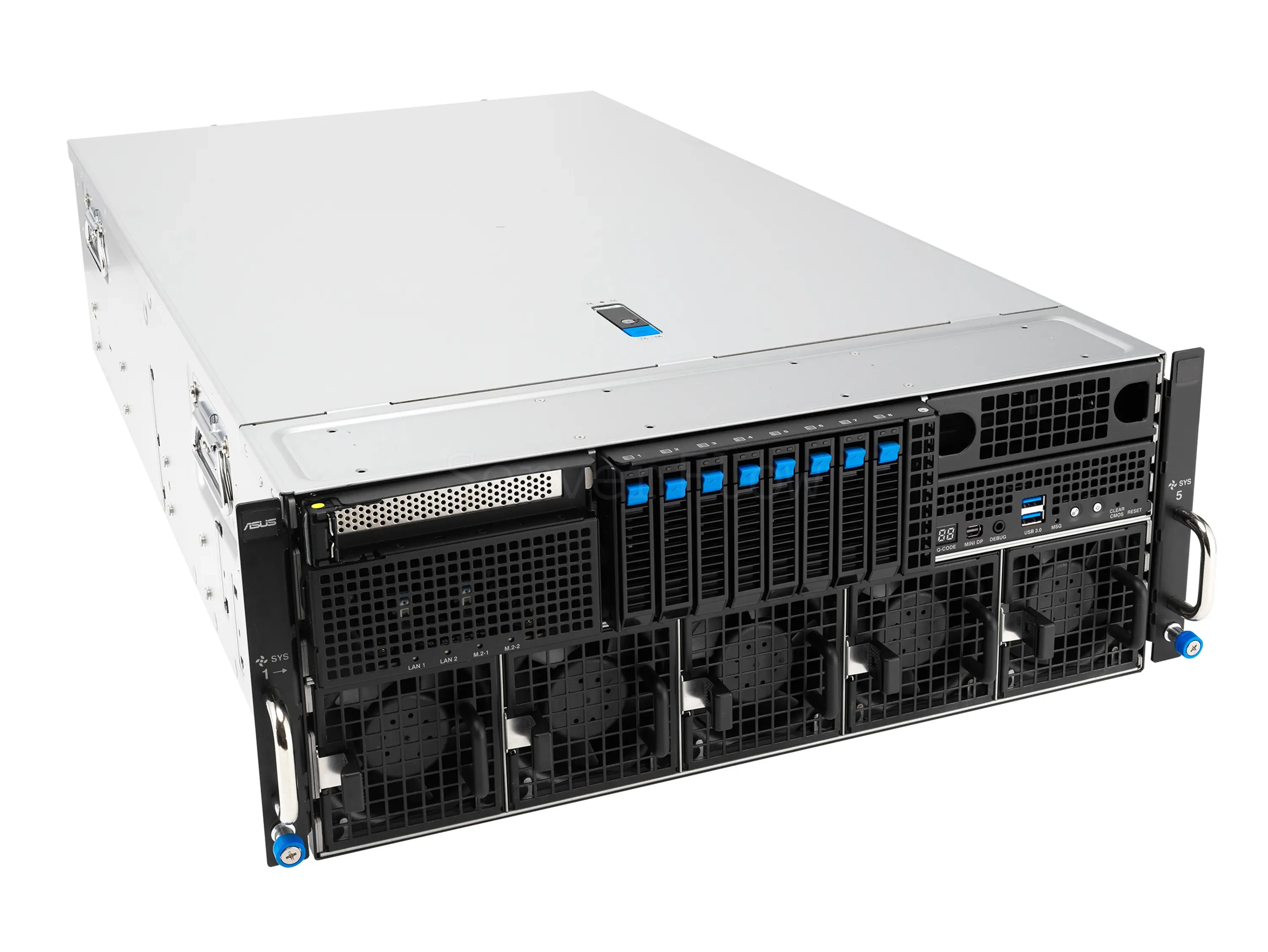 Ограничение, которое важно учитывать: NVLink нет, поэтому масштабирование по нескольким GPU опирается на PCIe и сетевую связность. В этой модели сервер это компенсирует: ConnectX-8 SuperNIC switch board, 8× 400Gb/s QSFP, и встроенный PCIe Gen6 switch для ускорения GPU-to-GPU коммуникаций