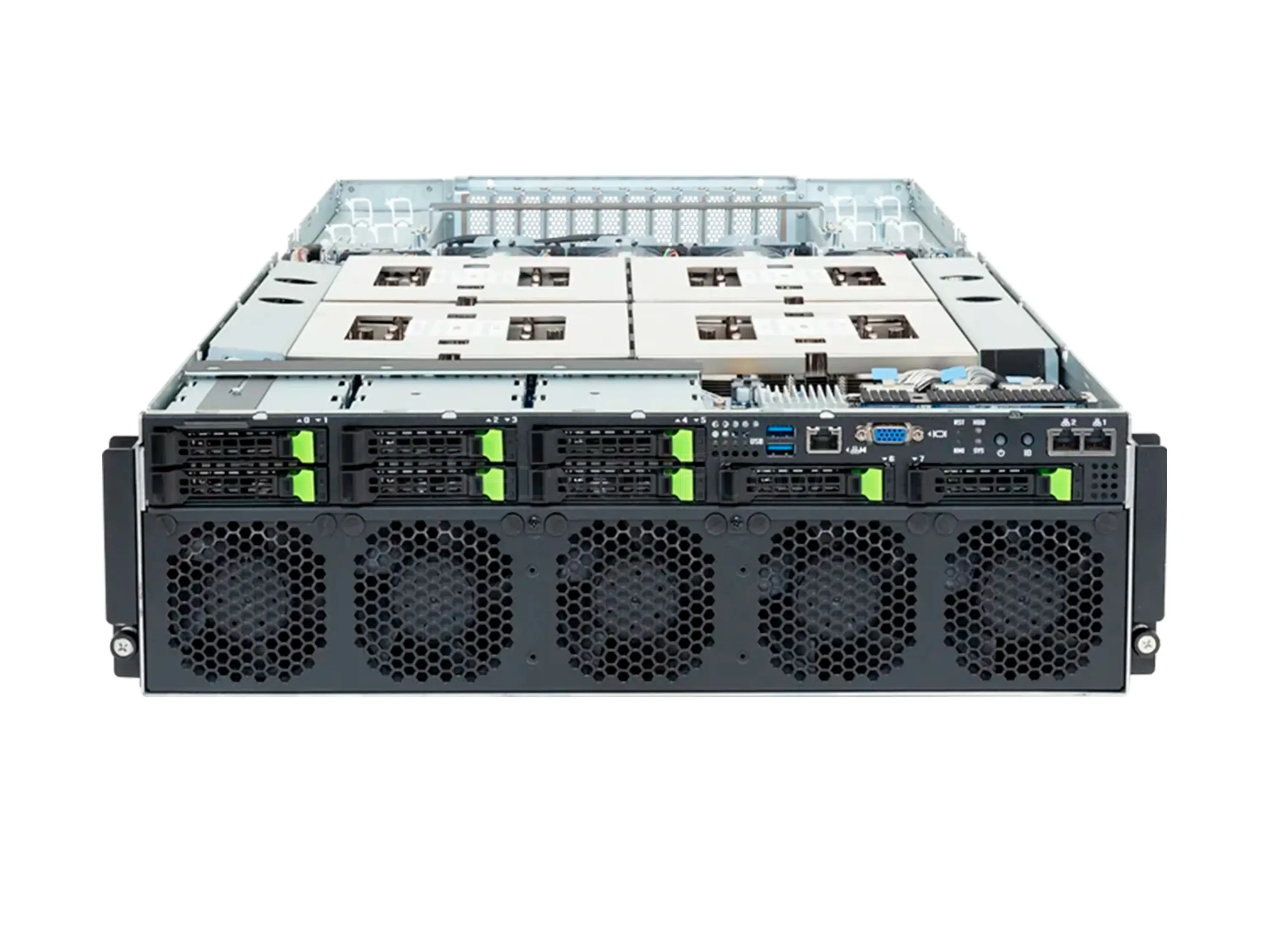 | SSD накопители | 8× 2.5" NVMe, 1× M.2 (2280/22110), PCIe Gen5 x4 |