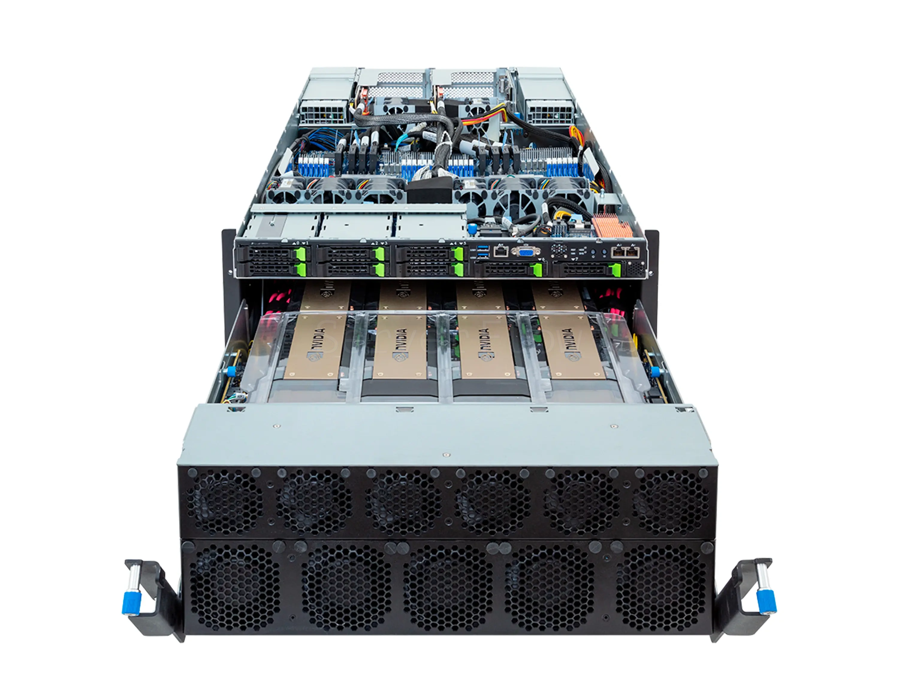 Из ограничений: при длинном контексте и росте batch size стоит заранее закладывать запас VRAM под KV-cache и служебный оверхед - это напрямую влияет на throughput и стабильность. Также у платформы есть аппаратные зависимости: при установке только одного CPU часть PCIe/памяти может быть недоступна, а для SATA/SAS-дисков требуется отдельная storage-карта.