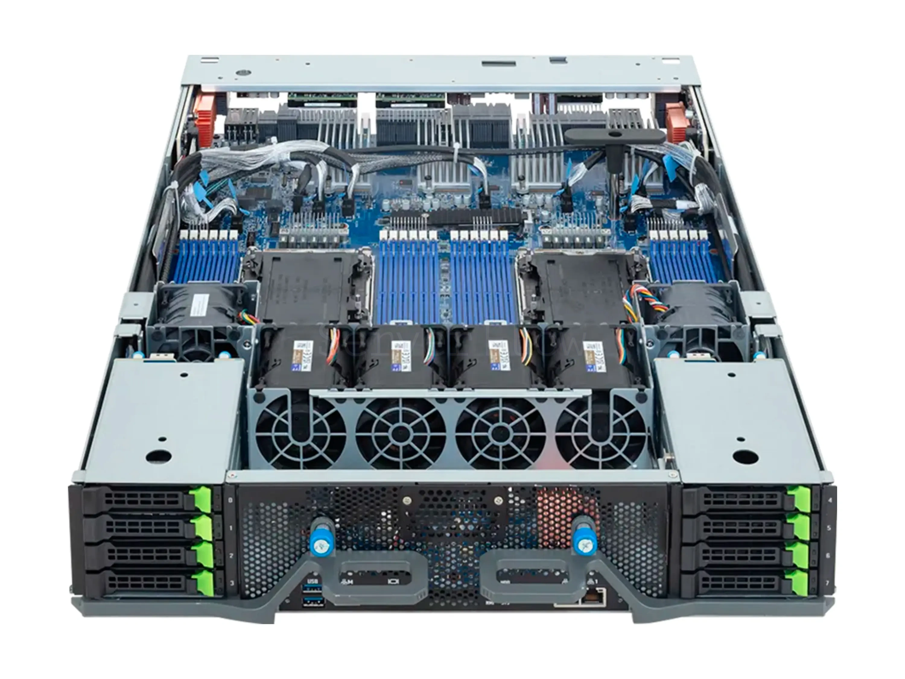 | SSD накопители | 8× 2.5" Gen5 NVMe hot-swap спереди и 2× M.2 (PCIe Gen5 x4 и Gen5 x2) |