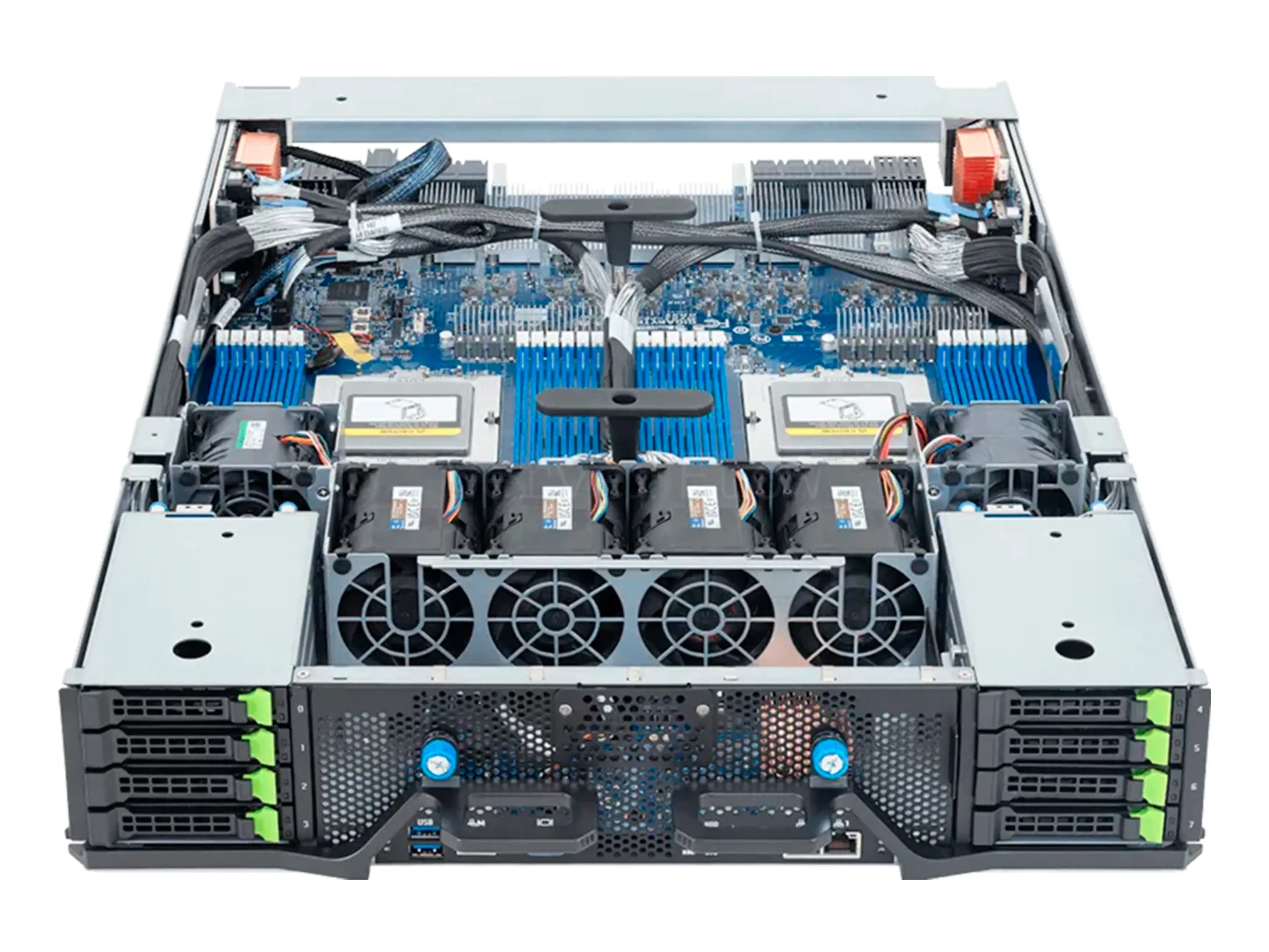 | SSD накопители | 8×2.5" Gen5 NVMe hot-swap и 2 внутренних M.2 (PCIe Gen3 x4 и Gen3 x1) |