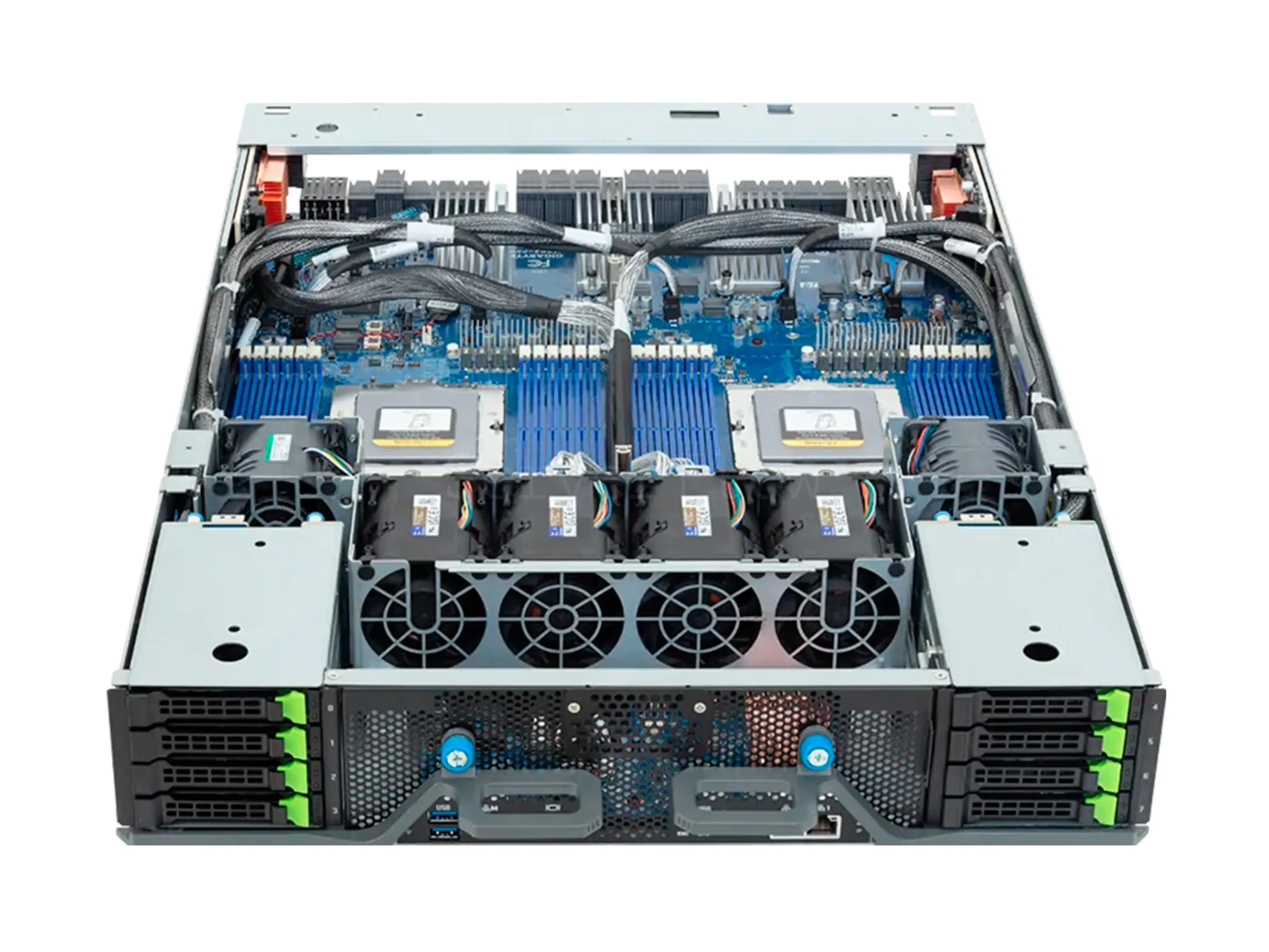 | SSD накопители | 8× 2.5" NVMe, 1× M.2 (2280/22110), PCIe Gen3 x4, 1× M.2 (2280/22110), PCIe Gen3 x1 |