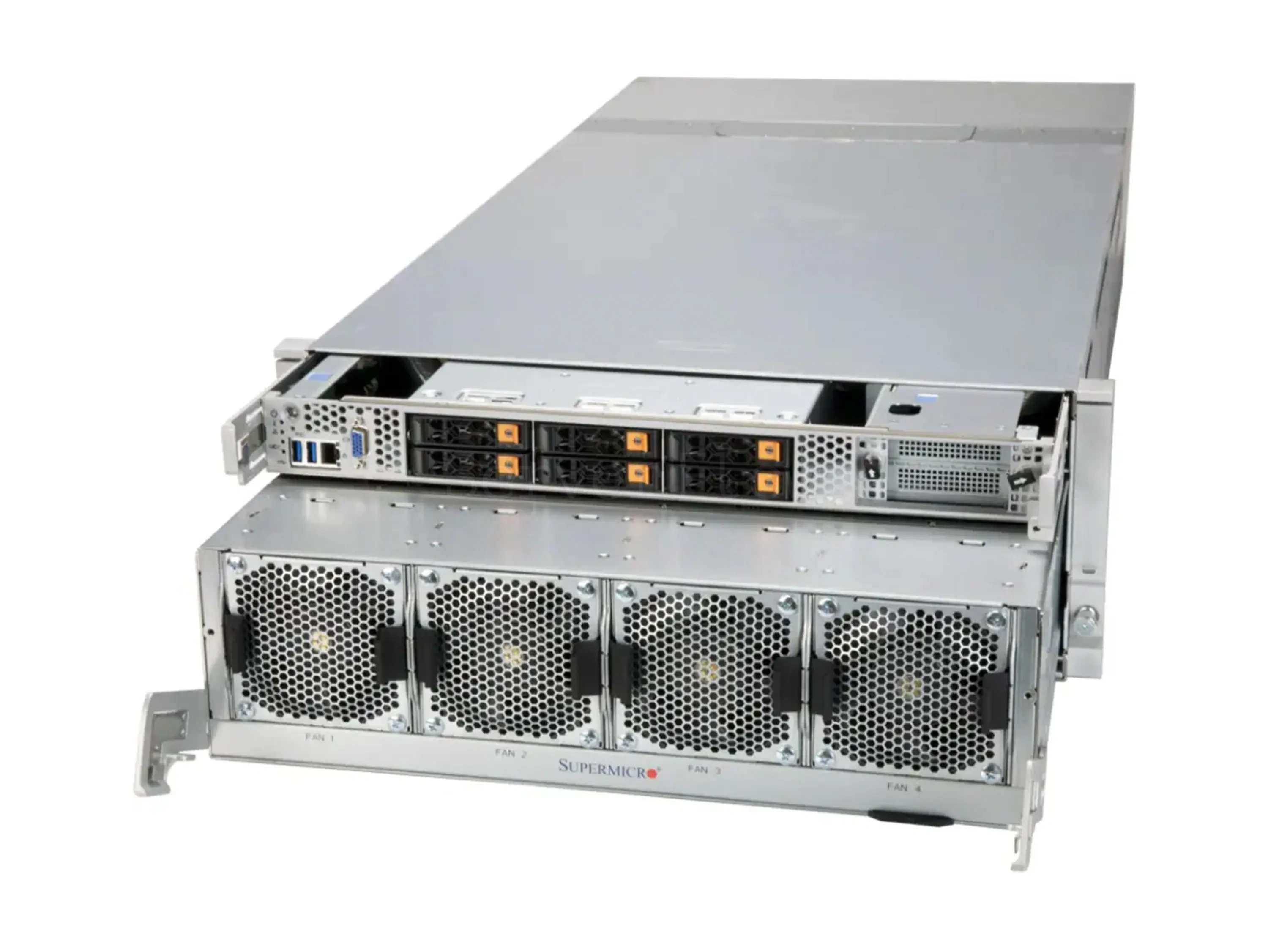 | SSD накопители | 6× hot-swap 2.5" NVMe, опционально до 10× U.2 NVMe 2.5" при установке дополнительных задних корзин, 2× M.2 NVMe PCIe 3.0 (2280, 22110) |