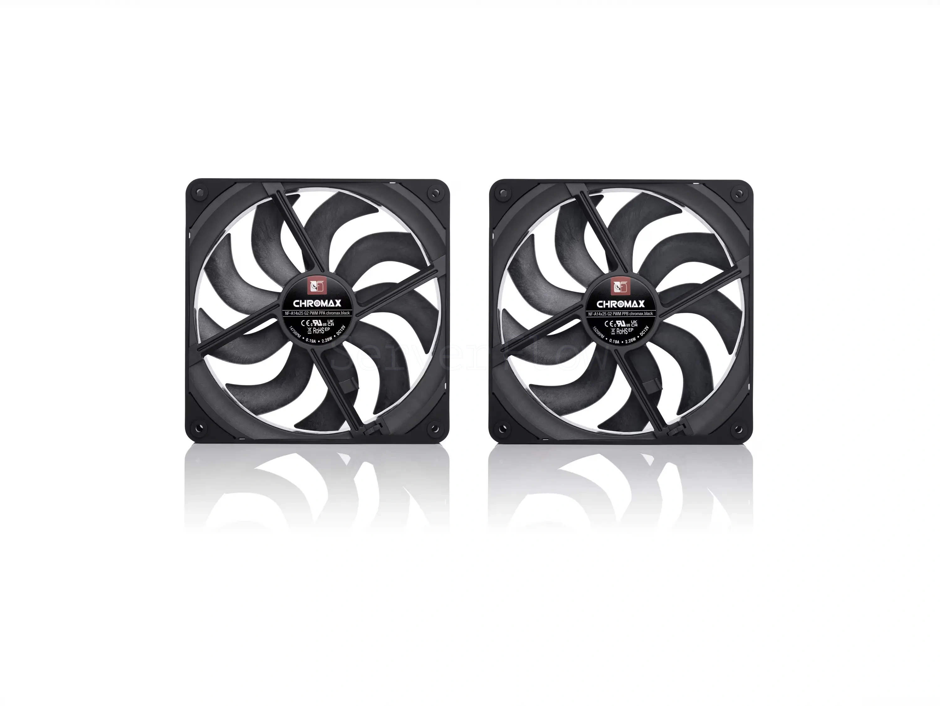 Комплект корпусных вентиляторов NF-A14x25 G2 PWM Sx2-PP chromax.black - это набор из двух 140-мм вентиляторов для корпусного охлаждения и радиаторов СЖО в полностью чёрном исполнении. Модель поддерживает PWM-регулировку, рассчитана на совместную работу в push-pull и side-by-side конфигурациях и использует подшипник SSO2.