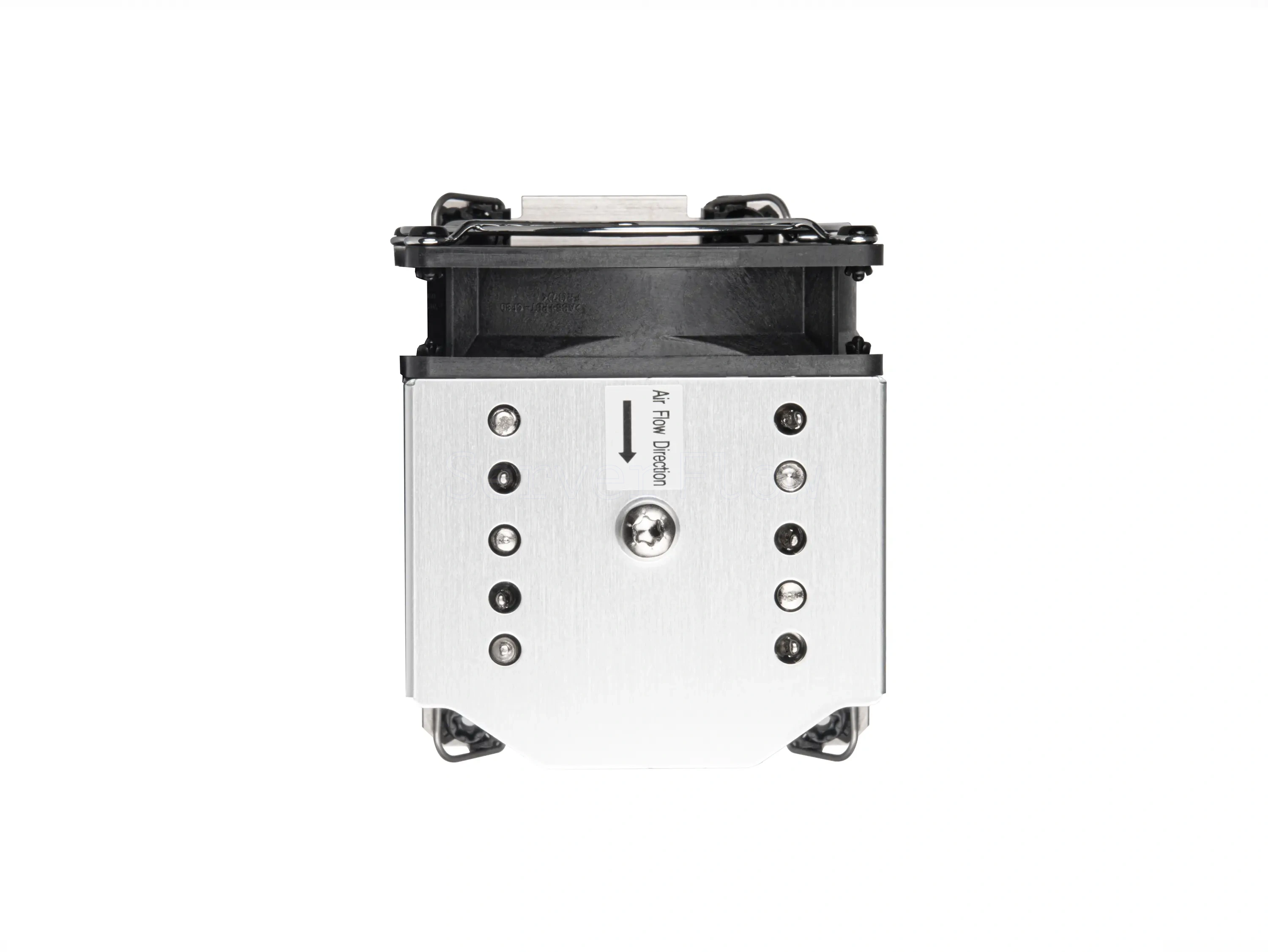 Кулер XE04-4677 - активное серверное решение для охлаждения процессоров Intel с разъёмами LGA4677 и LGA4710, предназначенное для платформ форм-фактора 4U. Конструкция с PWM-вентилятором и двойным шариковым подшипником обеспечивает эффективный теплоотвод для серверных систем и рабочих станций с высокой тепловой нагрузкой до 270 Вт. Серо-черное исполнение подходит для систем со сдержанным промышленным дизайном.