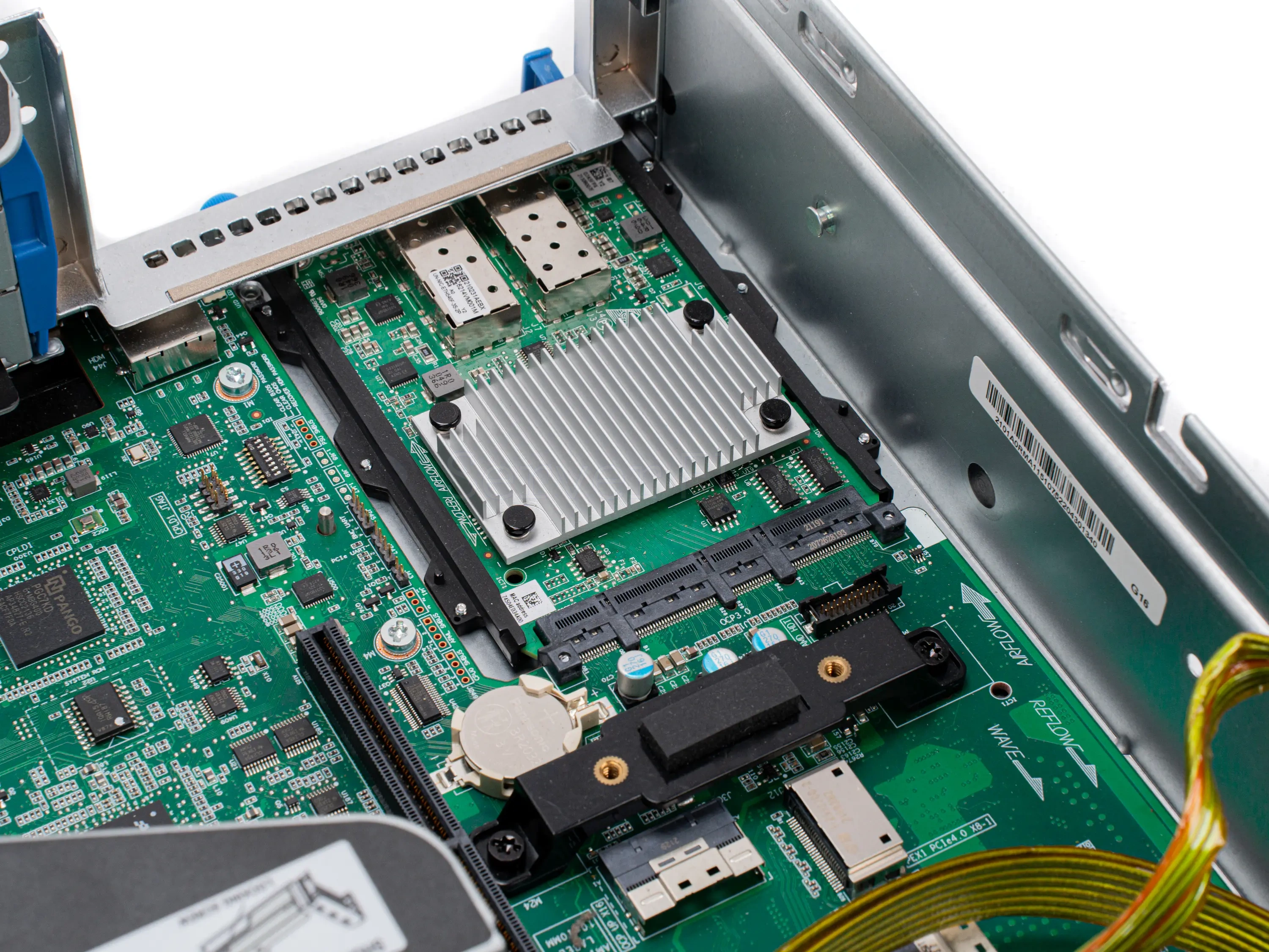 Сетевая карта позволяет подключить сервер к сети передачи данных Ethernet или Infiniband. Она может быть оснащена одним или несколькими портами формата SFP или RJ45. Тип портов определяет пропускную способность интерфейса и возможности сервера по обмену данными с внешней средой.